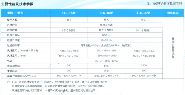 FLS-系列风淋室洁净厂房和装配洁净室的配套设备,用于吹除进入净化厂房的人体和携带物品表面附着的尘埃,同时风淋室也起气闸的作用,防止未净化的空气进入洁净区域,是进行人身净化和防止室外空气污染洁净区的有效设备。